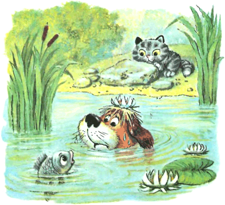 — Это ты сказала «мяу»? — спросил Щенок Рыбу, которая проплывала мимо него.