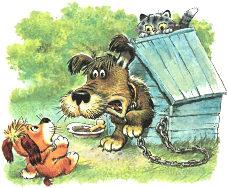 —  Ав-ав-ав!  — залаял Щенок, потом вспомнил, как рычал мохнатый Пёс, и зарычал: — Р-р-р-р!