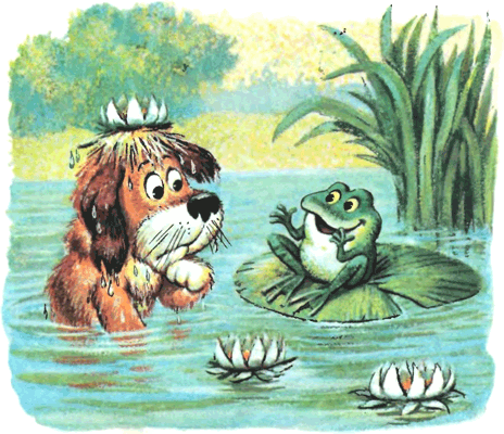 —  Ква-ква-ква!  — засмеялась Лягушка. — Какой ты глупый! Лягушки только квакают.