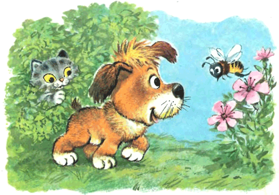 —  З-з-з-з!  — прожужжала обиженная Пчела и больно ужалила Щенка в кончик носа.
