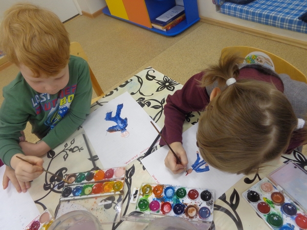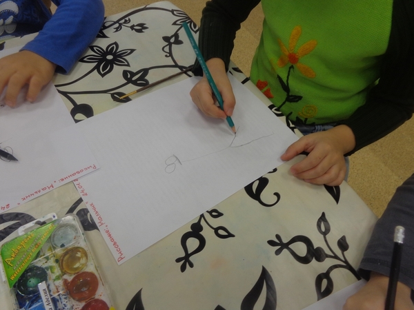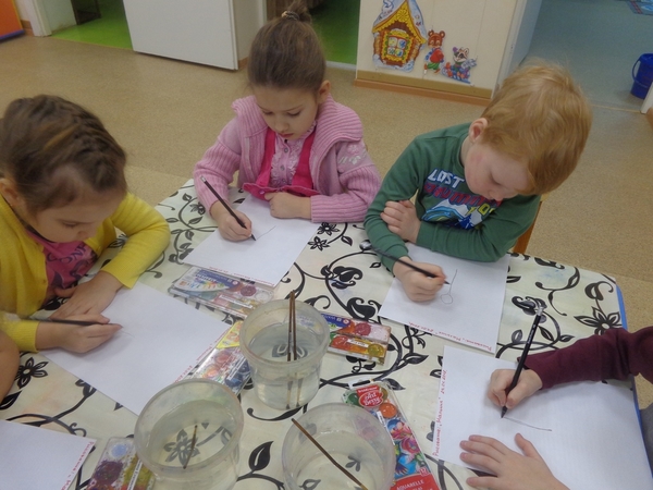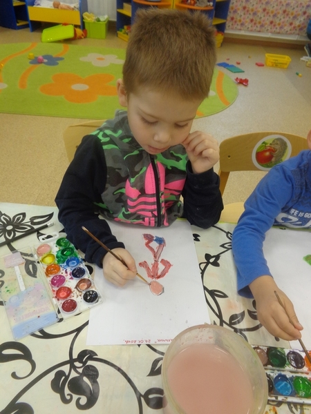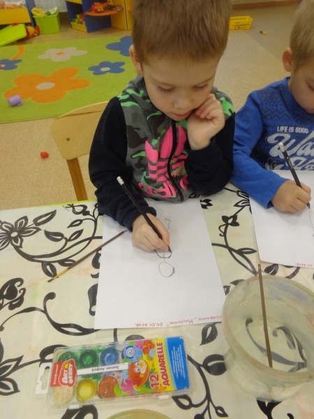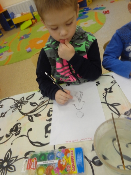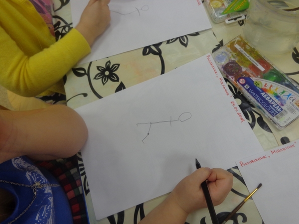 Не обязательно прорисовывать лицо (глаза, нос, брови, рот), это самостоятельное решение ребенка. Не у всех получаются тонкие линии при рисовании лица, поэтому чтобы не нервничал ребенок - пусть решает сам. Обычно же если хотябы один занялся прорисовкой, остальные глядя на соседа тоже начинают прорисовать лицо.