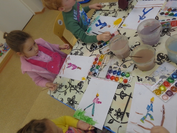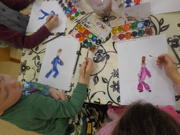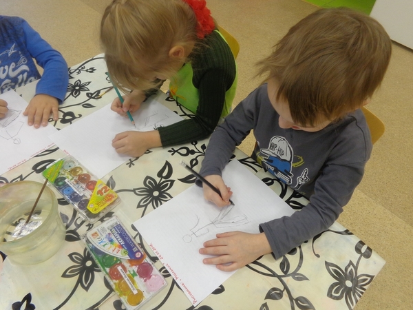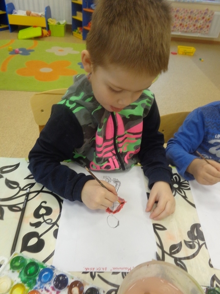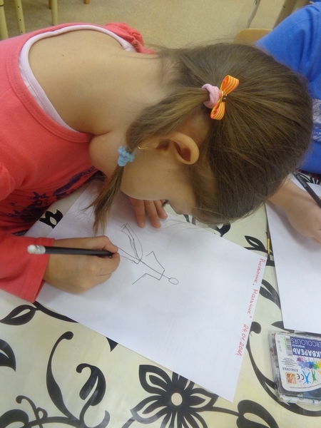 - Закрашиваем костюм (цвет дети выбирают сами).