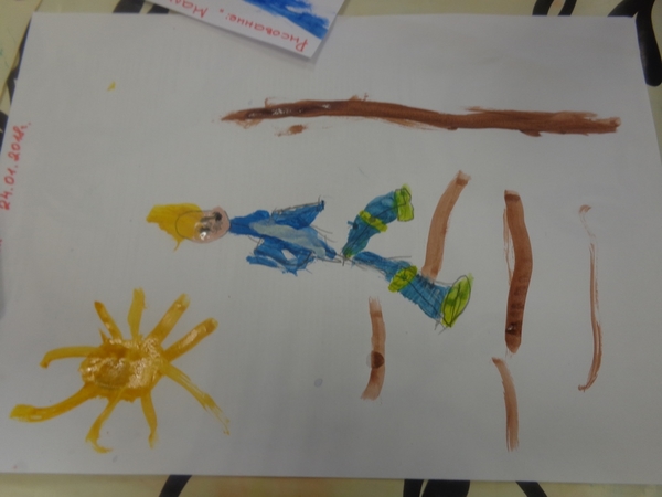 3. Рисуем руки (также показываю положение рук на себе и на ребенке; обычно дети сами выходят и не по одному; можно менять детей группами, получается нечто вроде зарядки - разминки).