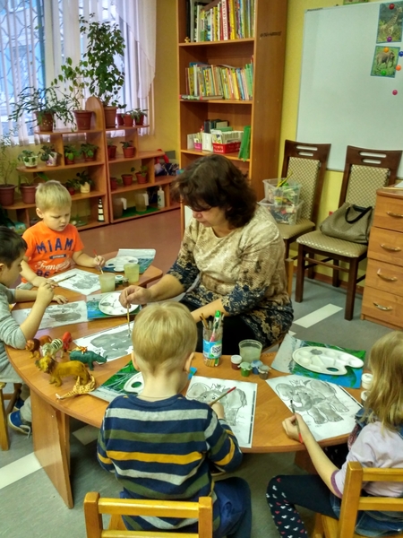 Задачи: Закреплять умение смешивать краски (черную и белую для получения серой);