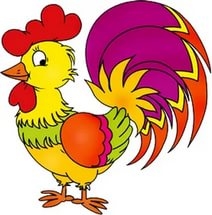Материалы: Большое изображение курицы на листе ватмана, детали для аппликации - овал, вырезанный из бумаги желтого цвета (1 шт. на каждого ребенка, круги, вырезанные из бумаги черного цвета (2 шт. на каждого ребёнка, треугольник, вырезанный из бумаги красного цвета (1 шт. на каждого ребёнка, клей и кисть для клея (на каждого ребёнка, салфетки, досточки.